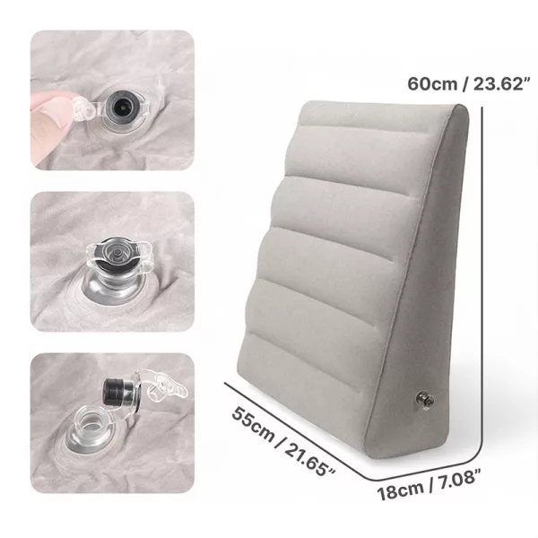 Profitez d'un soulagement apaisant en lisant, dormant ou en vous relaxant à la maison. Le design compact se glisse facilement dans n'importe quel sac pour voyager. Gonflez-le sans effort lorsque nécessaire, puis dégonflez et rangez rapidement. Le coussin en coin Ortorex vous aide à vous sentir à l'aise partout.