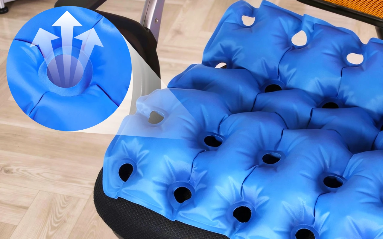 Les trous uniques permettent à l'air de circuler sous votre corps. Profitez d'une sensation de fraîcheur et de sécheresse même après des heures de travail.