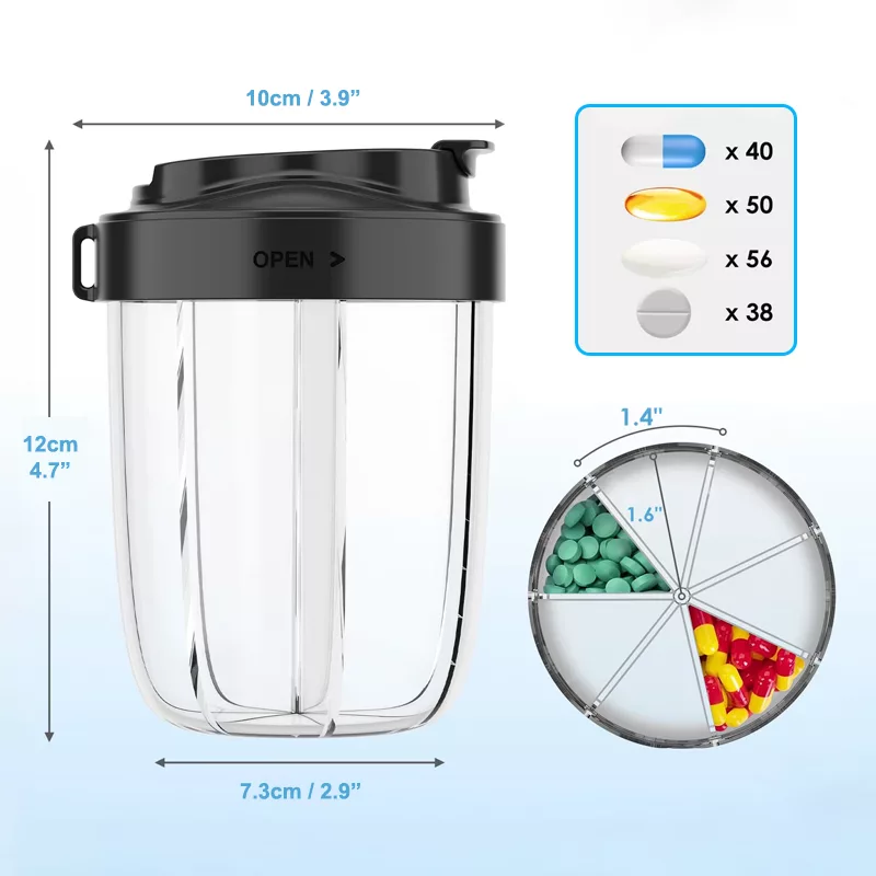 Les compartiments sont fabriqués à partir de matériaux sans BPA pour une manipulation sûre. Le plastique de qualité alimentaire garantit que vos comprimés restent protégés et non contaminés.