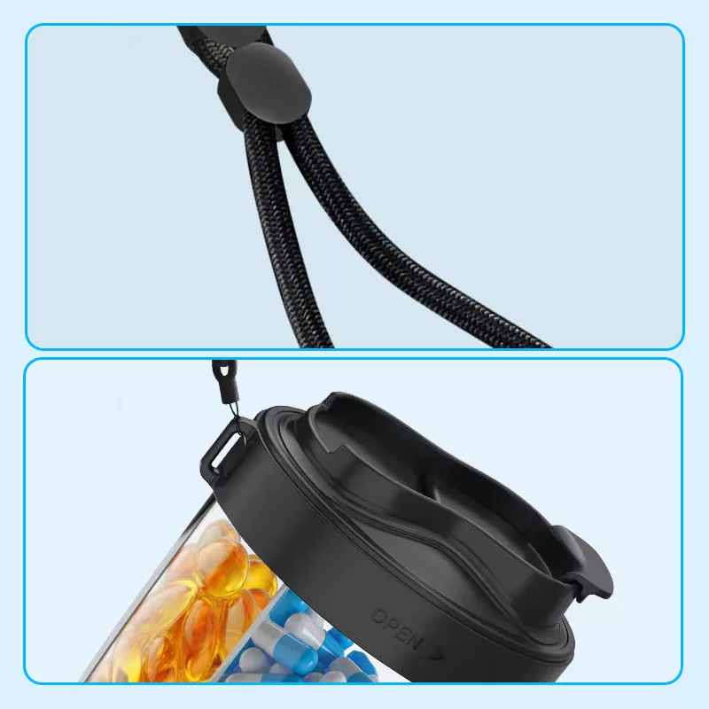 La sangle en nylon supporte de lourdes charges pour les longs trajets ou les vols. Emportez l'organisateur Ortorex partout et ne manquez jamais une dose.