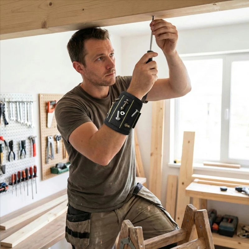 Je répare des ordinateurs et j’utilise ce bracelet pour tenir les petites vis. Les aimants puissants les gardent bien alignées et la sangle douce n’irrite pas ma peau.