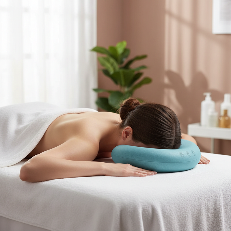 Reposez-vous en toute tranquillité tout en profitant d’une relaxation apaisante. La découpe unique offre un soutien doux sans exercer de pression sur les joues. Chaque moment passé aide à soulager les tensions et laisse votre cou rafraîchi. Conçu pour un usage domestique et professionnel en spa.