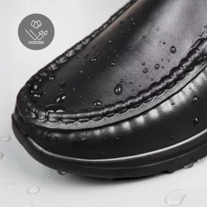 Ces mocassins sont devenus mes incontournables. Pas de lacets à gérer, et ils restent toujours secs à l’intérieur. Marché sur des sols mouillés, aucune glissade.