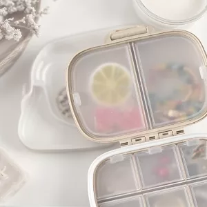 Vraiment utile quand je voyage. Mes pilules restent à leur place et la boîte ne s’ouvre jamais toute seule.