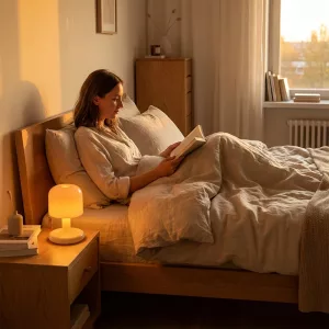 Je recharge la lampe pendant le dîner et elle tient toute la nuit. La tonalité chaude est très cosy et m’aide à m’endormir plus vite.