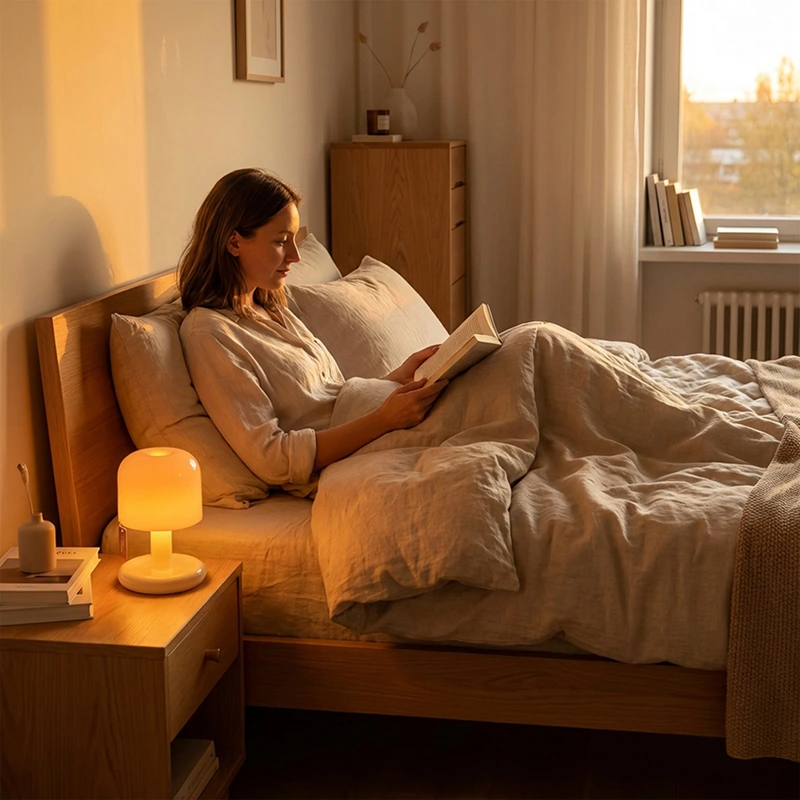 La fonction de gradation de cette lampe est vraiment fluide. Je la rends plus lumineuse pour lire, puis je baisse l’intensité pour n’avoir qu’une douce lueur en m’endormant.