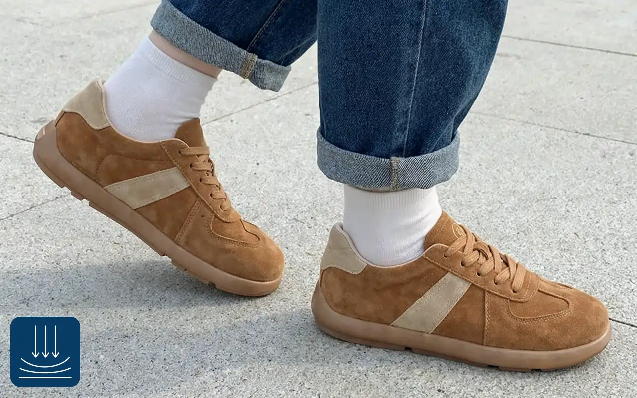 Acheté ces baskets minimalistes pour voyager. Elles se plient à plat, sont très légères, et j’ai parcouru aéroports et musées toute la journée sans avoir mal aux voûtes plantaires ni aux orteils.
