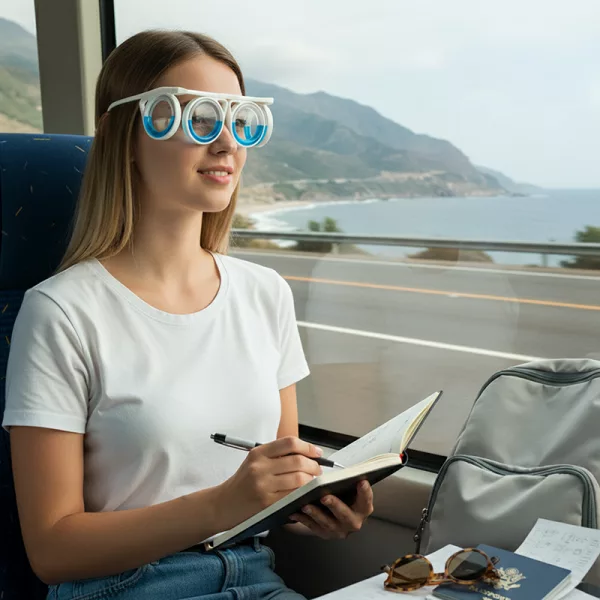 Aucun médicament ni effet secondaire n'est nécessaire pour vos prochaines vacances. Légères et faciles à utiliser, les lunettes Ortorex rendent les trajets plus agréables.