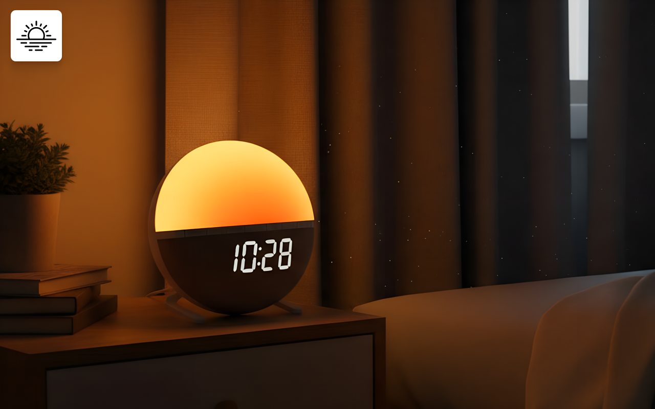 Se réveiller est tellement plus facile maintenant que j’utilise ce réveil simulateur d’aube. La lumière progressive ressemble à une douce étreinte chaque matin !