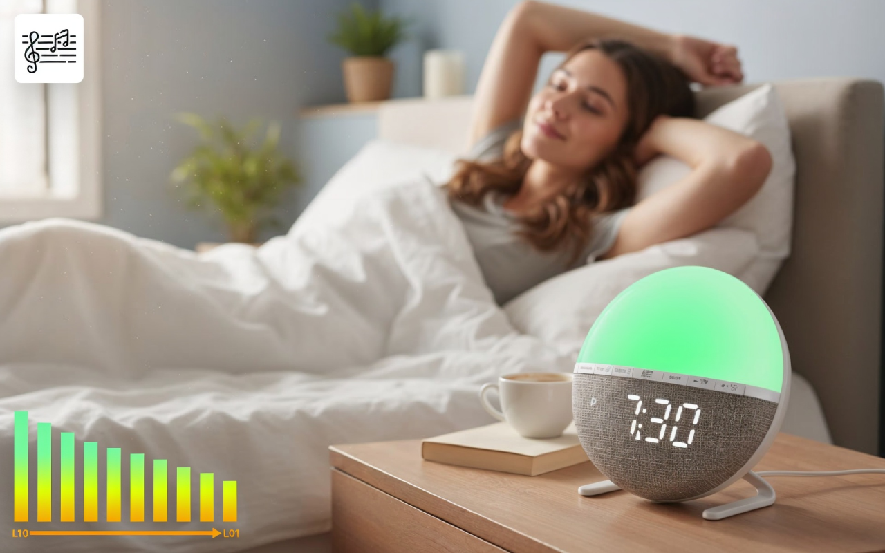 Choisissez parmi sept sons relaxants ou seulement la lumière du lever de soleil. Dix niveaux de volume permettent à chacun de trouver la routine matinale parfaite.