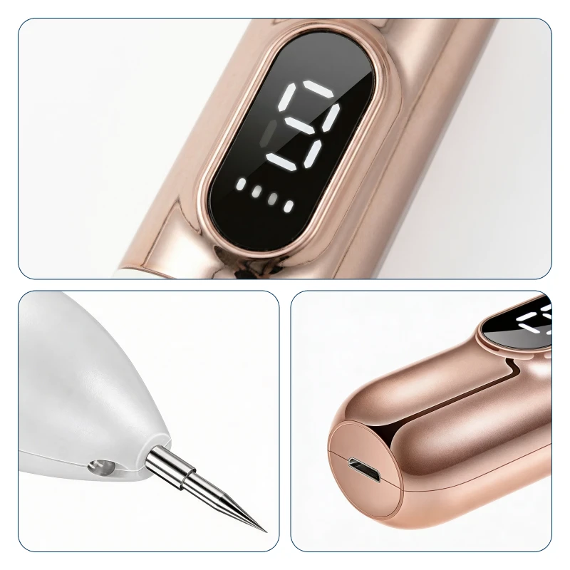 L'affichage intuitif et le design rendent chaque étape simple. Remplacez les aiguilles rapidement et rechargez facilement via USB.