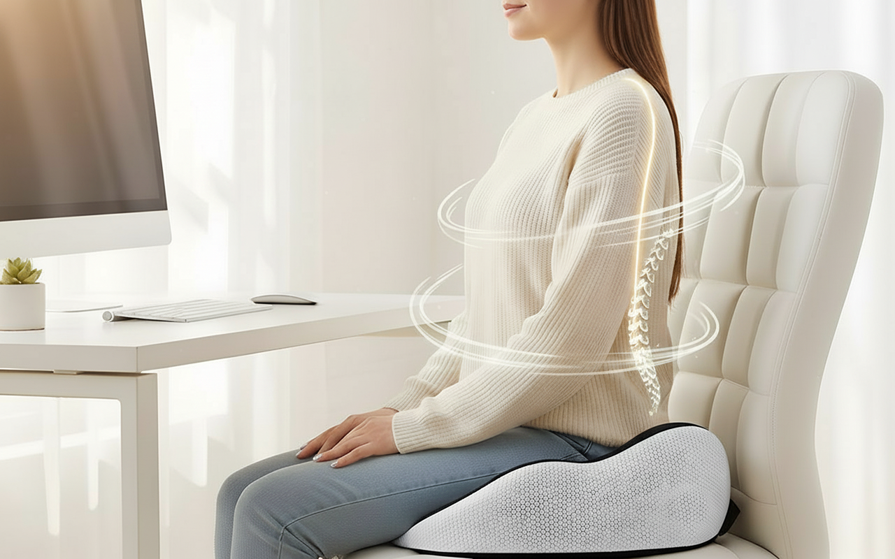 J’utilise ce coussin à mon bureau depuis des semaines et je ne rentre plus chez moi avec des douleurs au dos. Il est doux et m’aide à m’asseoir bien droit.