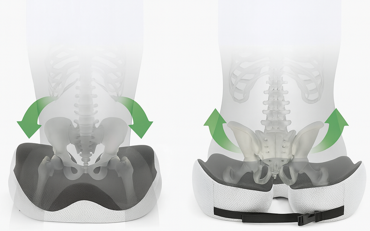 De longues heures sur des chaises dures provoquent rapidement des douleurs et de la fatigue. Le coussin Ortorex soutient votre bas du corps et vous garde détendu. Fini les hanches endolories ou les jambes engourdies pendant le travail, la conduite ou le repos.