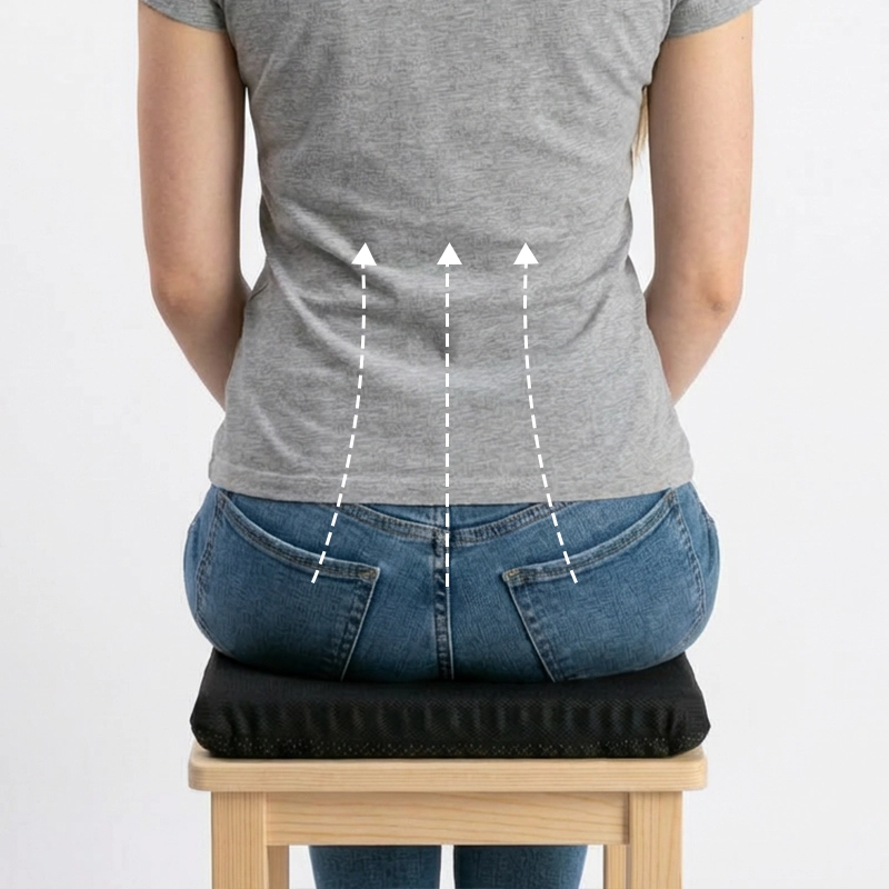 La répartition uniforme du poids réduit l'inconfort dû à une assise prolongée. Ressentez moins de tension dans le bas du dos et le coccyx.