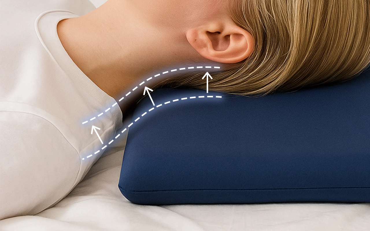 La tension disparaît lorsque votre tête repose doucement sur l'oreiller. Cela garantit le confort de votre cou et du haut du dos.