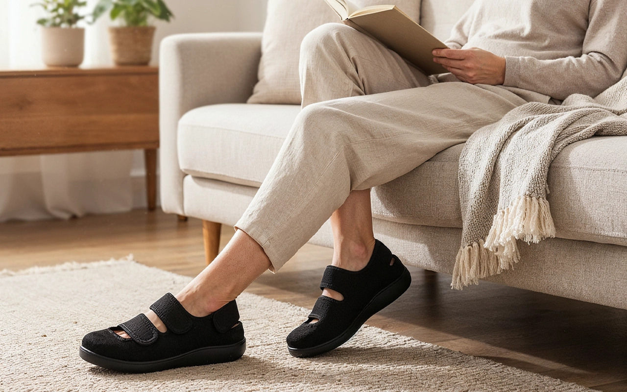 Chaussures orthopédiques larges à enfiler avec brides Velcro