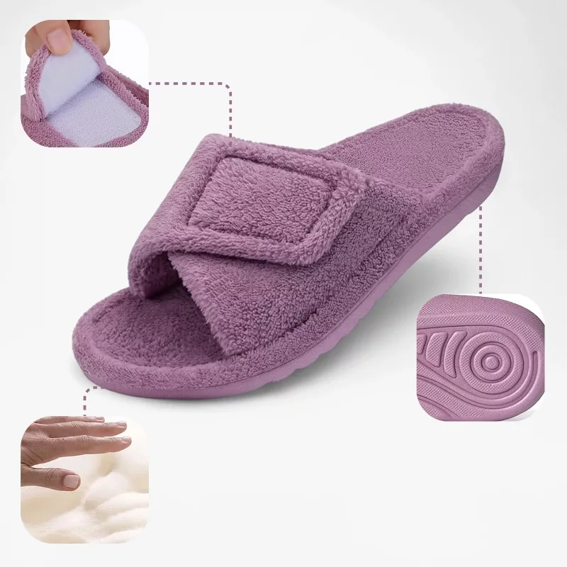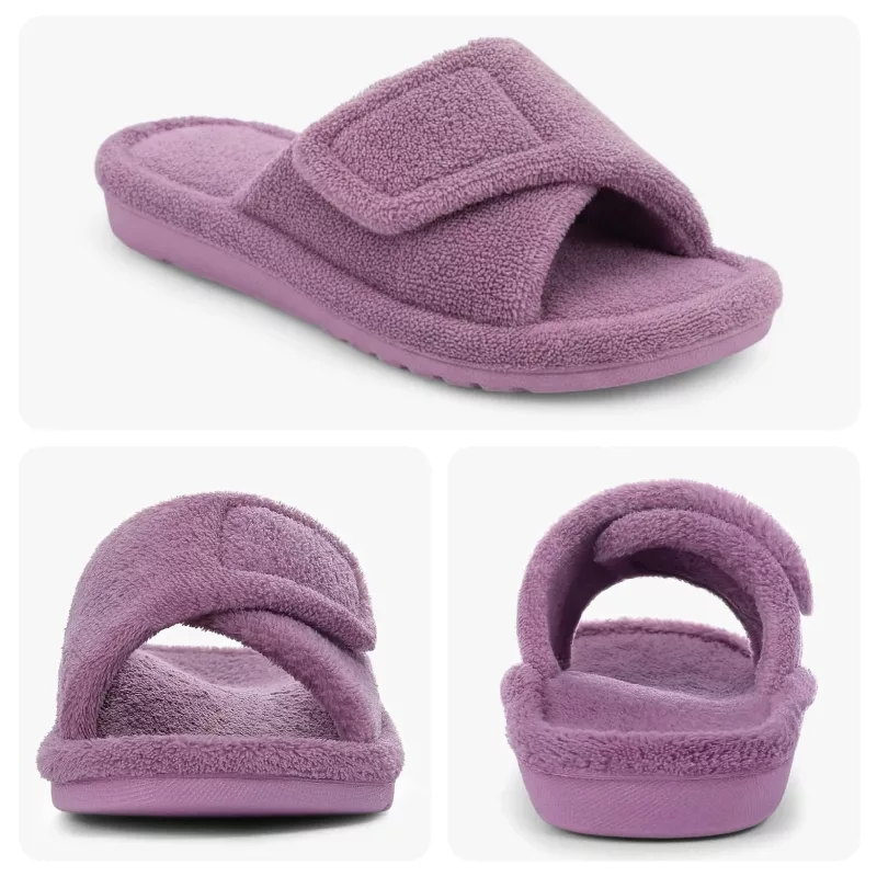 Tellement doux et confortables ! Ajuster la sangle permet un ajustement parfait. Mes pieds peuvent se détendre toute la soirée quelle que soit la saison.