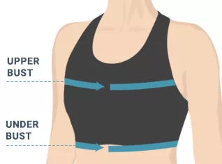 - 2. Pour trouver la mesure du tour de poitrine supérieur, placez le mètre ruban autour de votre torse, juste sous les aisselles et au-dessus de votre poitrine.