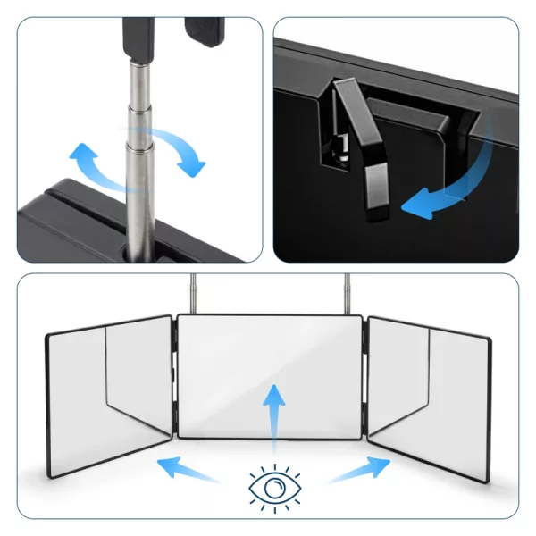 Trois panneaux révèlent facilement les zones difficiles à voir à chaque fois. Plus de zones manquées ou de contorsions gênantes.