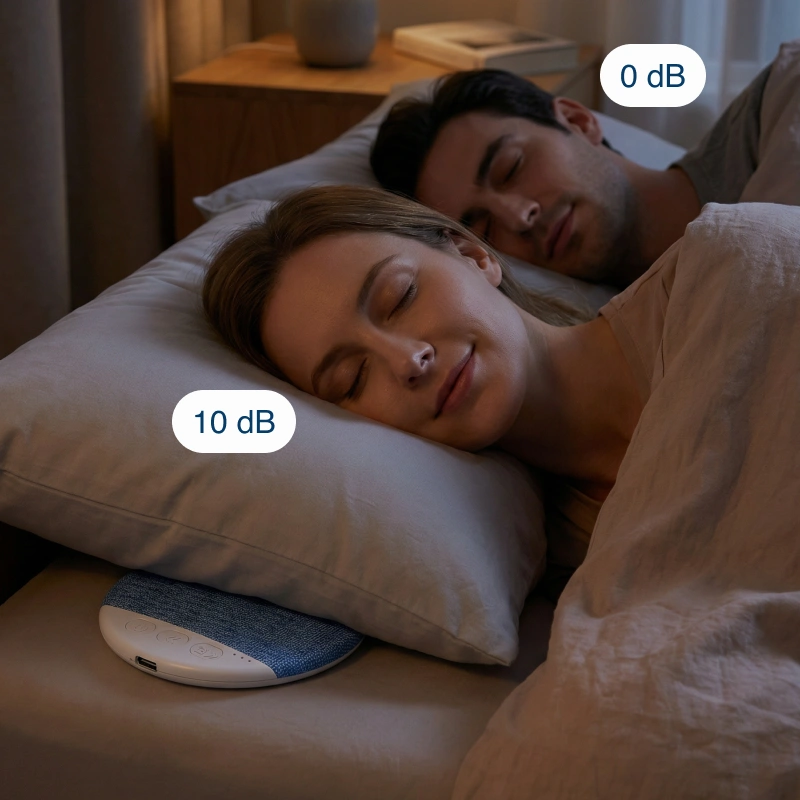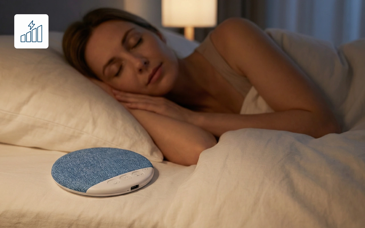 Ce petit appareil sonore est super utile pour voyager. Je le mets dans mon sac, et les bruits d’hôtel ne me dérangent plus du tout.
