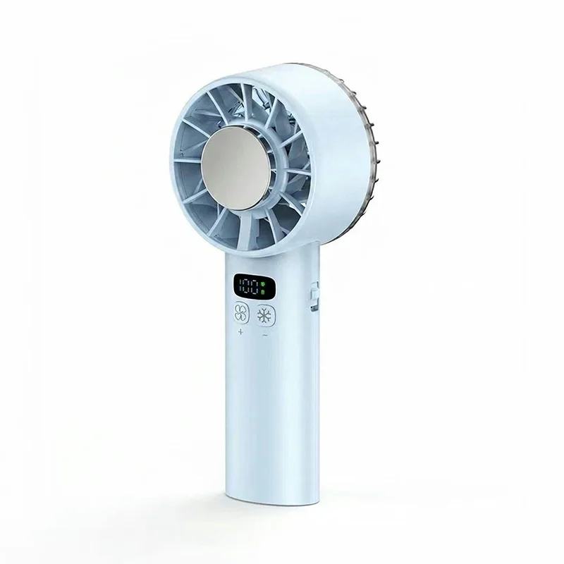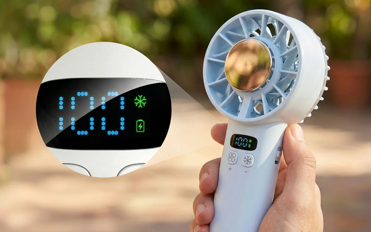 Je garde ce ventilateur de poche dans mon sac de travail pour les bus bondés. Un seul bouton change la vitesse, et le petit écran affiche exactement le niveau sélectionné.