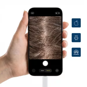 La caméra capillaire Ortorex vous permet de voir la peau de près sans distorsion. Vous pouvez repérer les problèmes cachés rapidement et facilement.