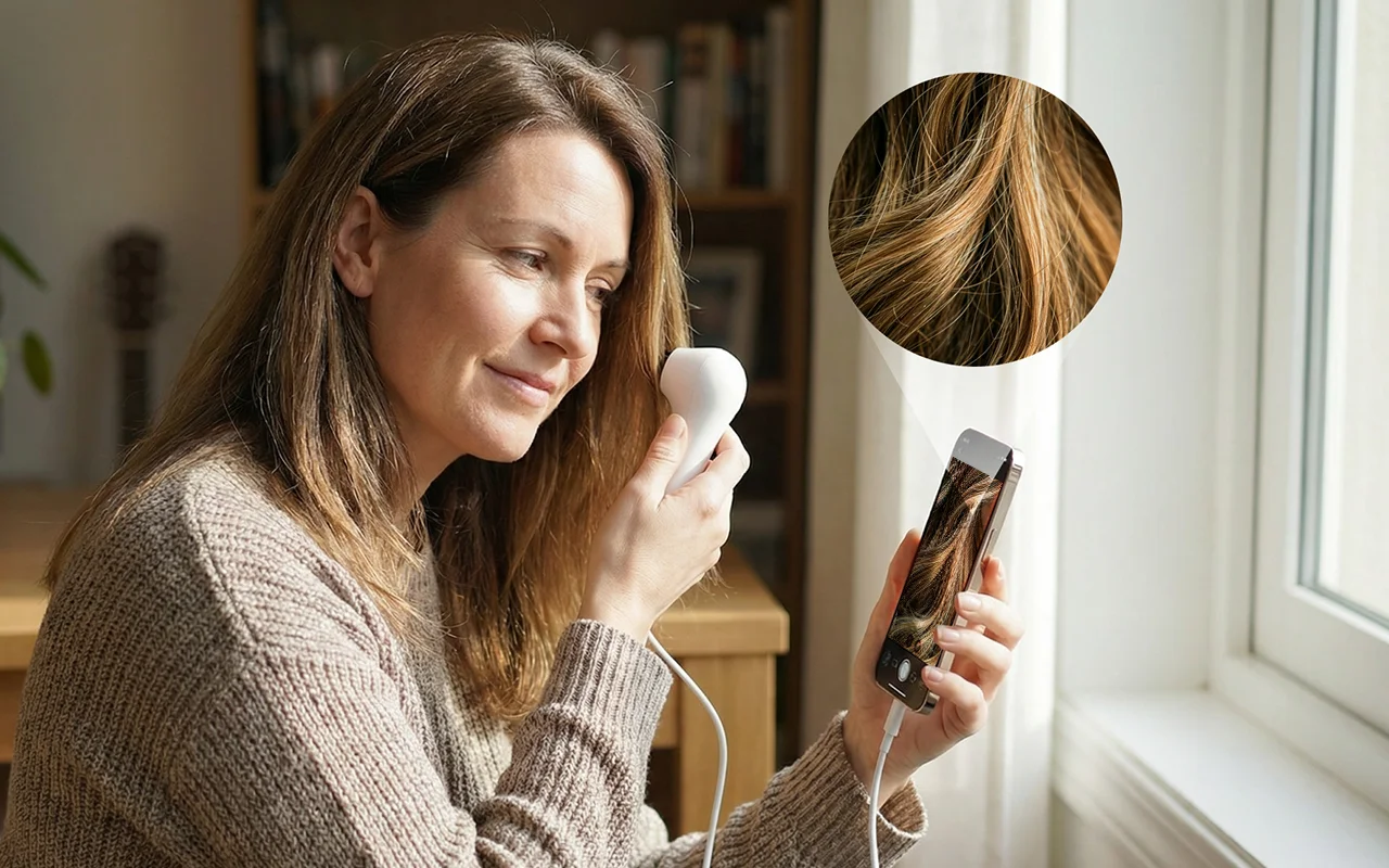 Utiliser la caméra capillaire à la maison a complètement changé ma façon de prendre soin de mon cuir chevelu. Le zoom est excellent et les vidéos m’aident à me rappeler à quoi ça ressemblait avant.