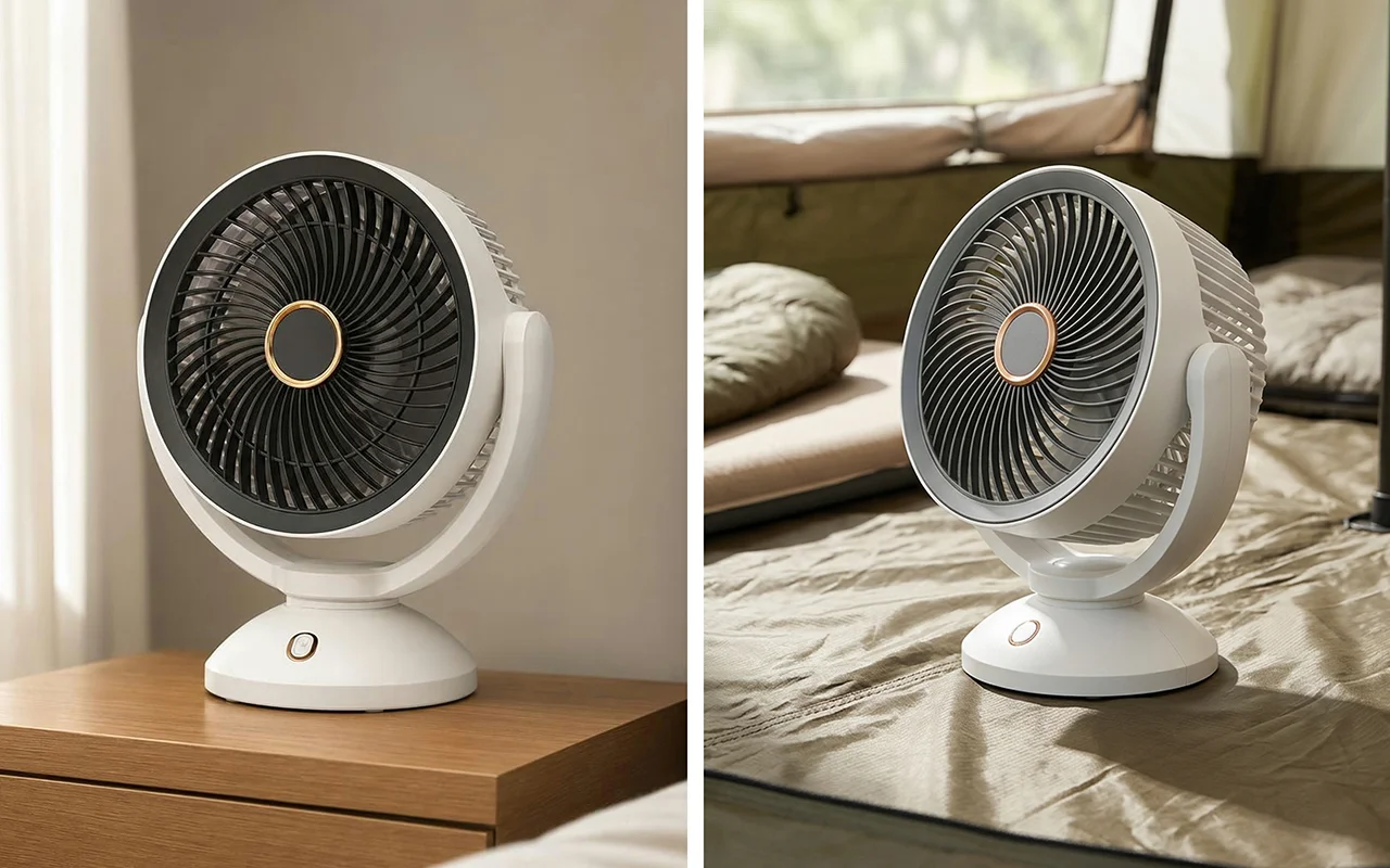 Nous avons emporté ce petit ventilateur en camping le week-end dernier. Il a fonctionné toute la nuit sur une batterie externe, a évité que la tente soit étouffante et s’est rangé facilement dans mon sac à dos.