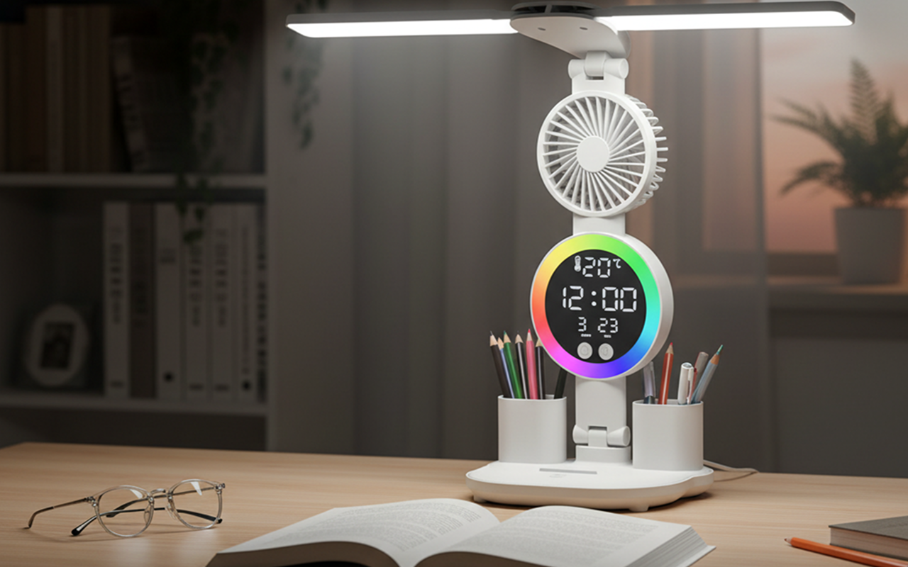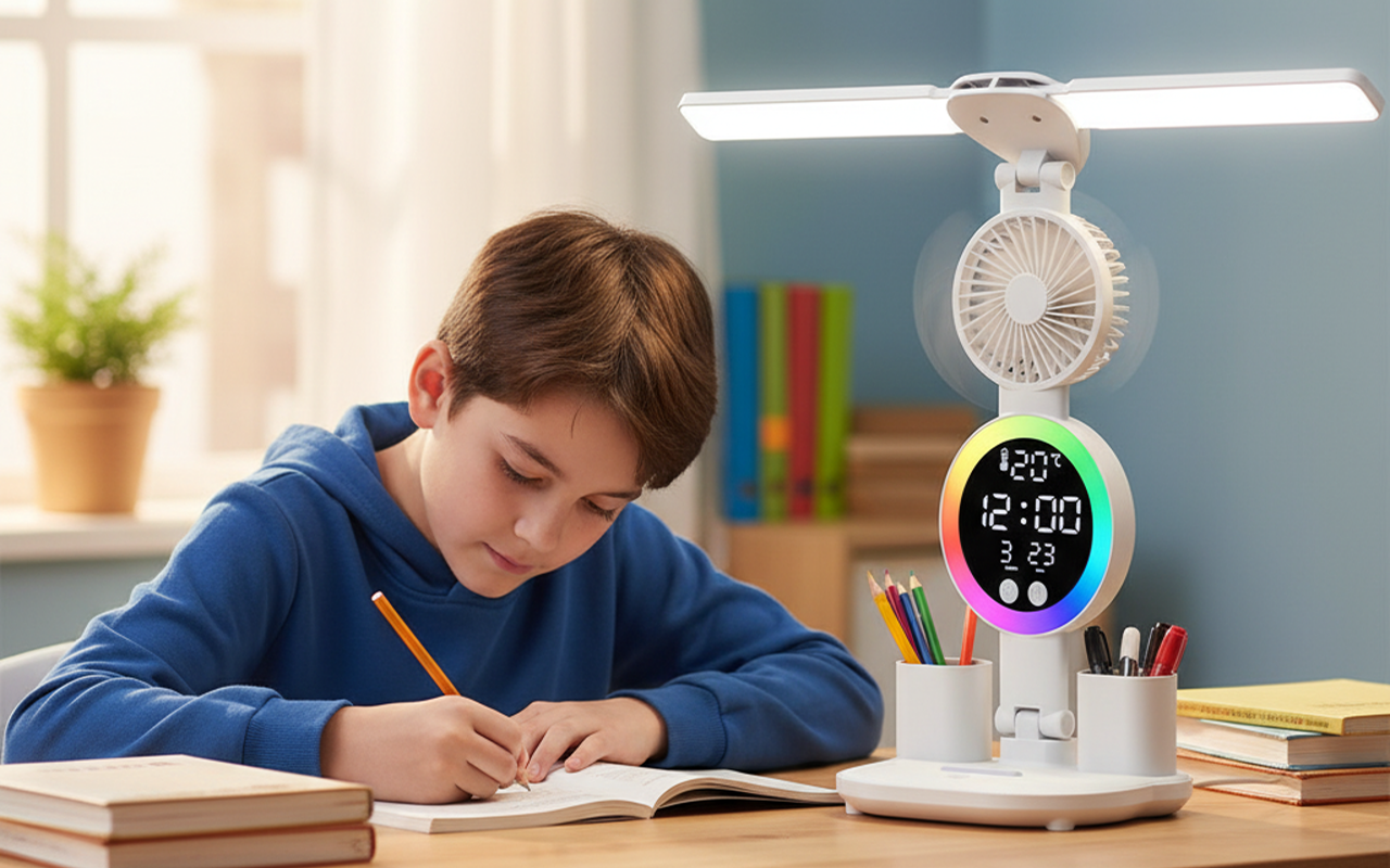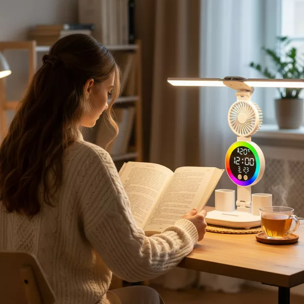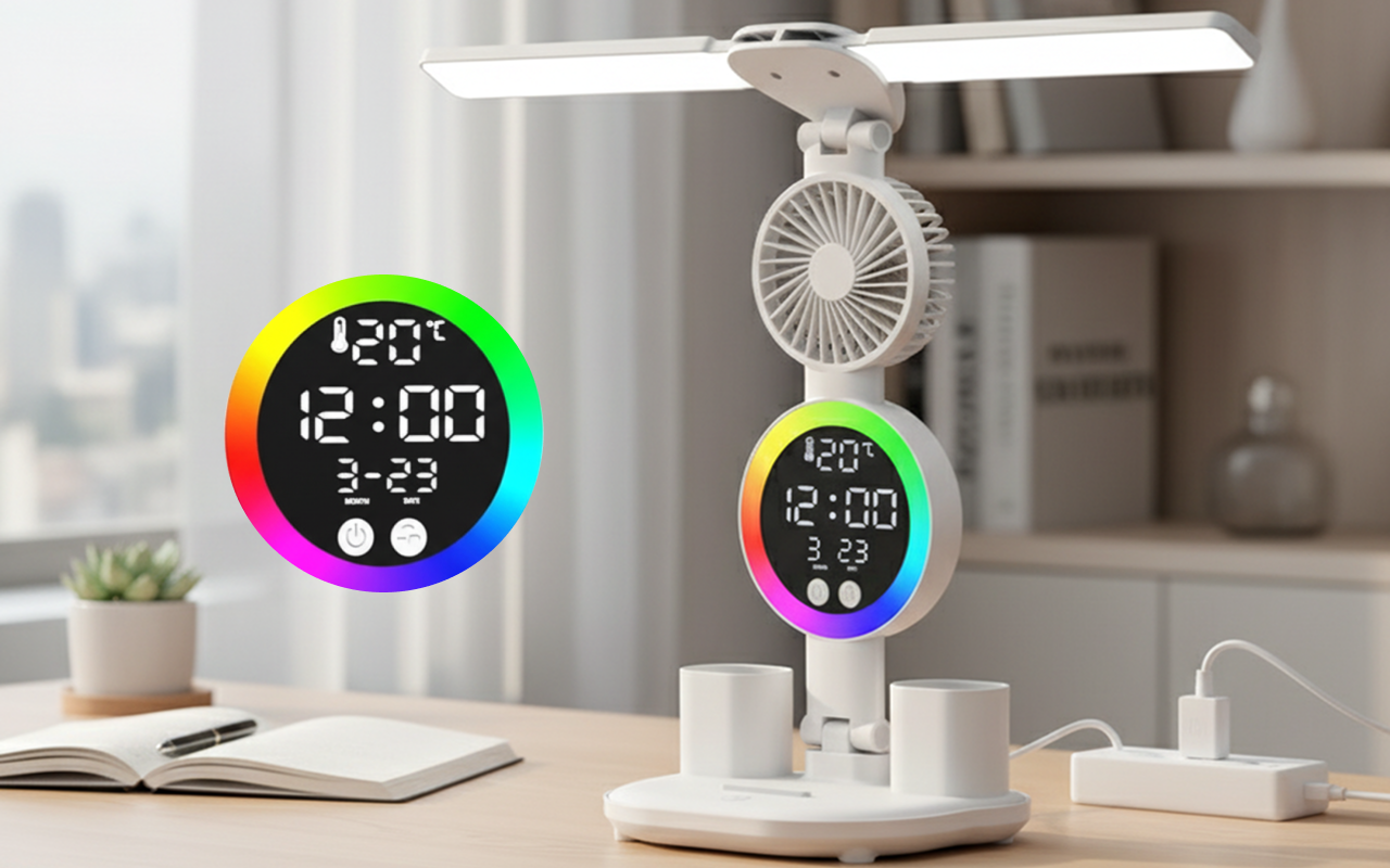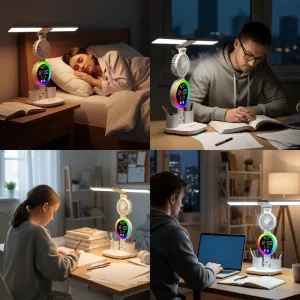 Cette lampe a changé ma façon d’étudier. lumière ne me fait jamais mal aux yeux et le ventilateur me garde au frais tout le. J’adore pouvoir voir l’heure si facilement aussi.