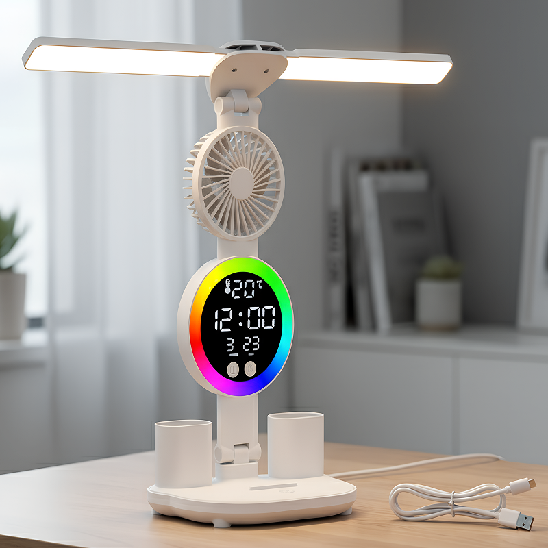 Cette lampe a changé ma façon d’étudier. lumière ne me fait jamais mal aux yeux et le ventilateur me garde au frais tout le. J’adore pouvoir voir l’heure si facilement aussi.