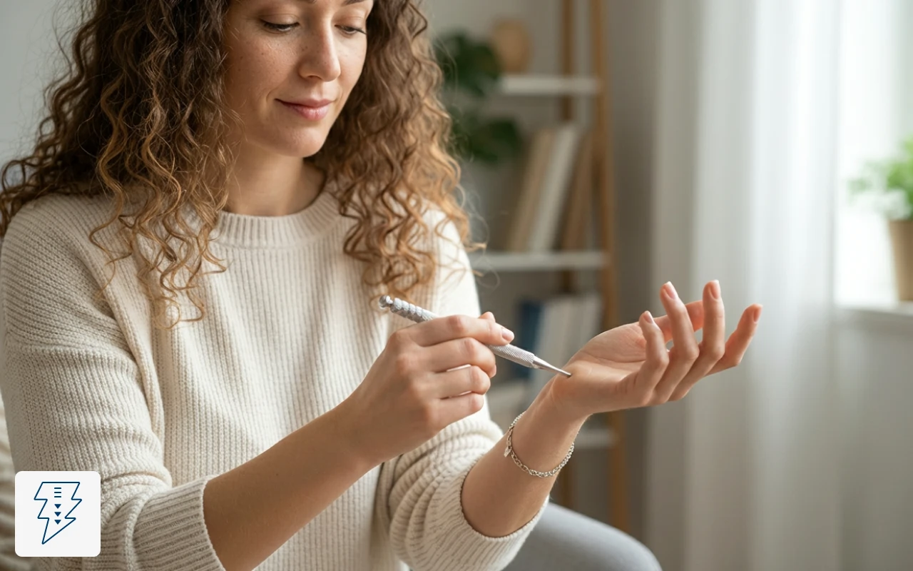 J’utilise le stylo en regardant la télé, en appuyant le long de mes épaules et de mes mains. Il est simple à manier et procure rapidement une sensation relaxante et apaisante.