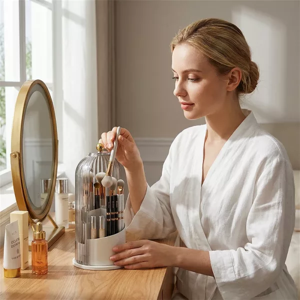 couvercle transparent protège vos accessoires de beauté de la poussière et des éclaboussures. Les pinceaux restent frais et impeccables pour un résultat parfait chaque jour.