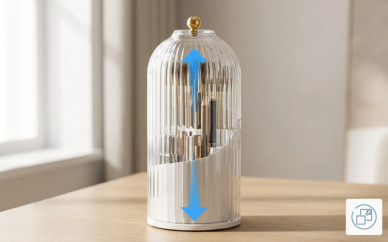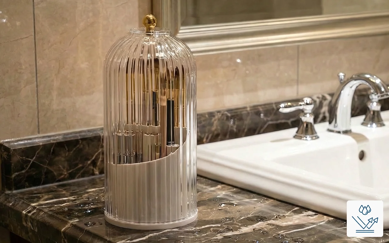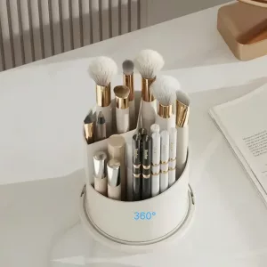 Fini le désordre sur ma coiffeuse ! Ce distributeur garde mes pinceaux propres et organisés. Le couvercle transparent est parfait pour éviter la poussière.