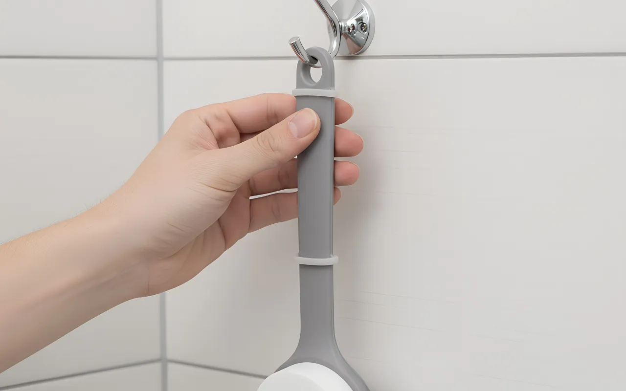 Si votre dos est sec, cet accessoire est indispensable. Rapide à utiliser, facile à ranger avec la boucle, et je ne le fais même pas tomber avec les mains mouillées.