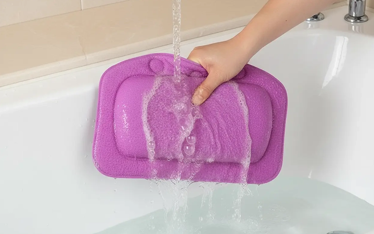 Parfait pour lire dans la baignoire ! Le coussin ne bouge jamais, même si je me déplace. Il sèche vite et n’a jamais d’odeur bizarre.