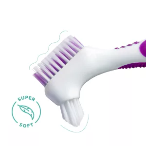 Cet outil tient parfaitement dans ma main et rend le nettoyage rapide. J’aime les deux têtes de brosse pour atteindre partout, et elle est douce pour mon dentier.