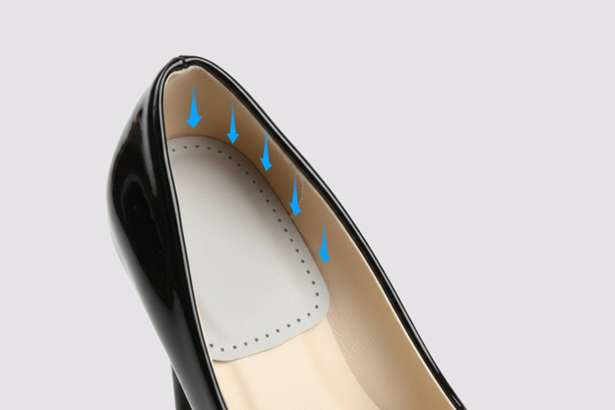 Je les ai mis dans mes baskets à enfiler qui étaient lâches à l’arrière. Ils restent bien en place, mes talons ne glissent plus et le supplément de coussin est très agréable.