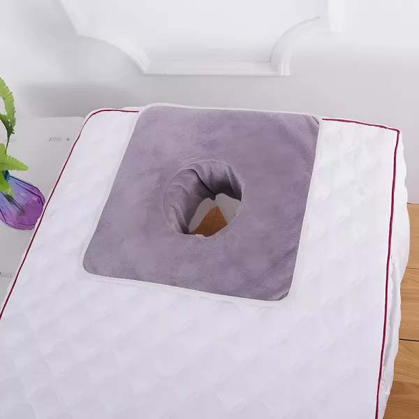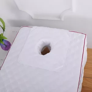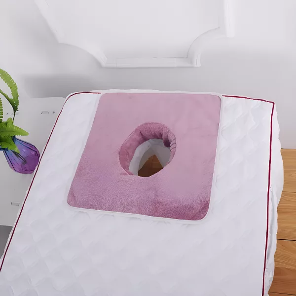 Cette serviette pour les séances de massage est vraiment moelleuse. L’ouverture pour le visage est parfaitement formée, et elle ne bouge pas quand les clients s’installent.