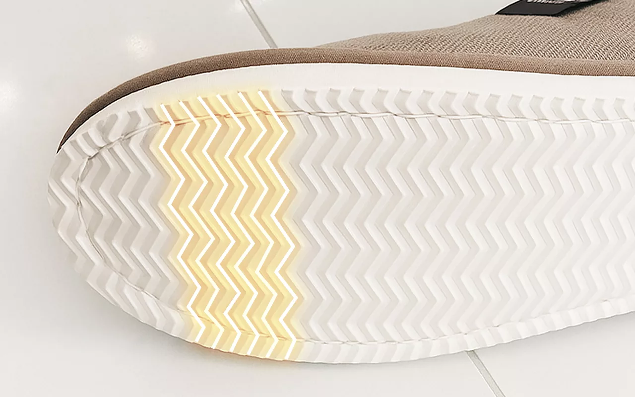 Les semelles texturées offrent de la stabilité sur les surfaces en bois, carrelage ou moquette. Chaque pas est sûr, aidant à prévenir les chutes inattendues en intérieur.
