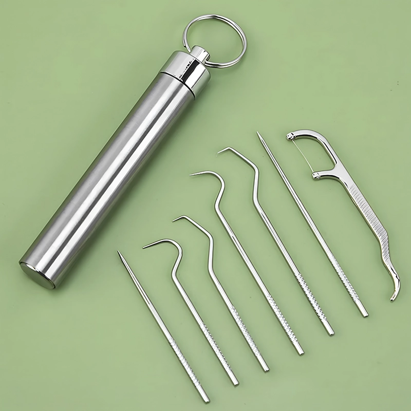 Oubliez les aliments coincés entre les molaires et les moments gênants à l’extérieur. Le set en acier inoxydable Ortorex se glisse facilement dans les poches ou les sacs. Lavez et réutilisez chaque outil pour une bouche plus fraîche. Un nettoyage simple et rapide vous garde le sourire toute la journée.