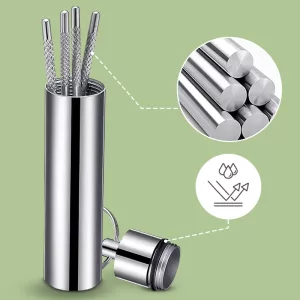 Bien mieux que les cure-dents en bois qui cassent. Je le range simplement dans l’étui en métal et je l’accroche à mon sac à dos. Ça évite tellement de déchets.