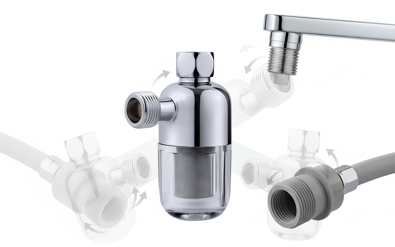 Le filtre Ortorex convient aux robinets, douches et appareils de lavage. Un simple tour permet de le connecter à presque tous les raccords.