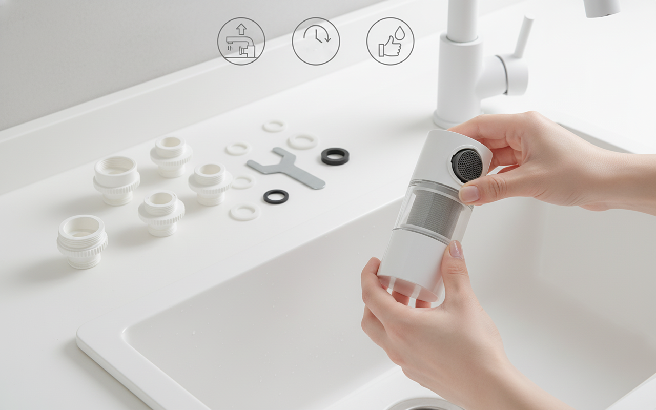 Super rapide à fixer sur le robinet. Ma fille préfère vraiment le goût. Il tourne même pour faciliter la vaisselle après le dîner.
