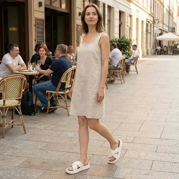 J’ai les pieds sensibles, mais ces sandales sont douces et offrent un bon maintien. Les brides ne s’enfoncent pas dans la peau, et le dessus noué donne du style même aux tenues les plus simples.