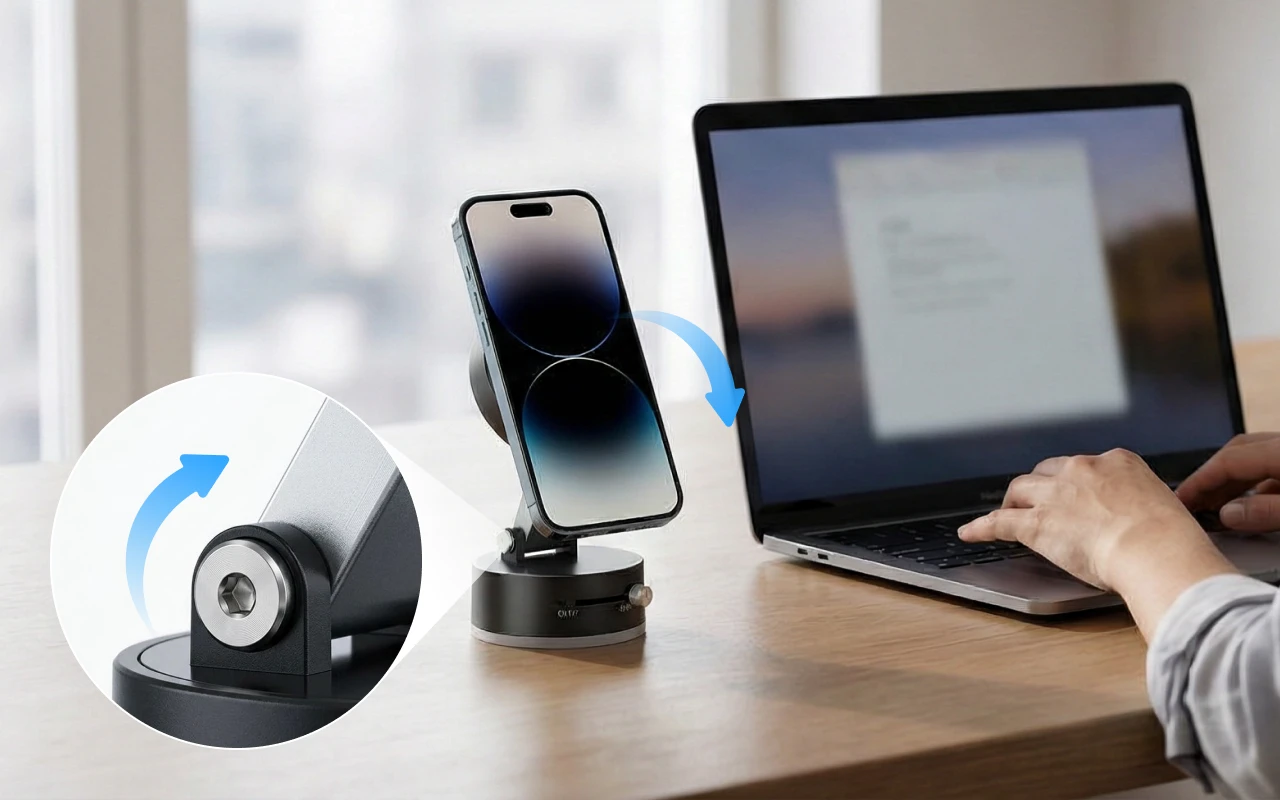 J’ai acheté ce support pour mon bureau. Il est très utile pour les appels vidéo sans avoir besoin d’appuyer mon téléphone contre des objets au hasard. Les aimants sont vraiment puissants !