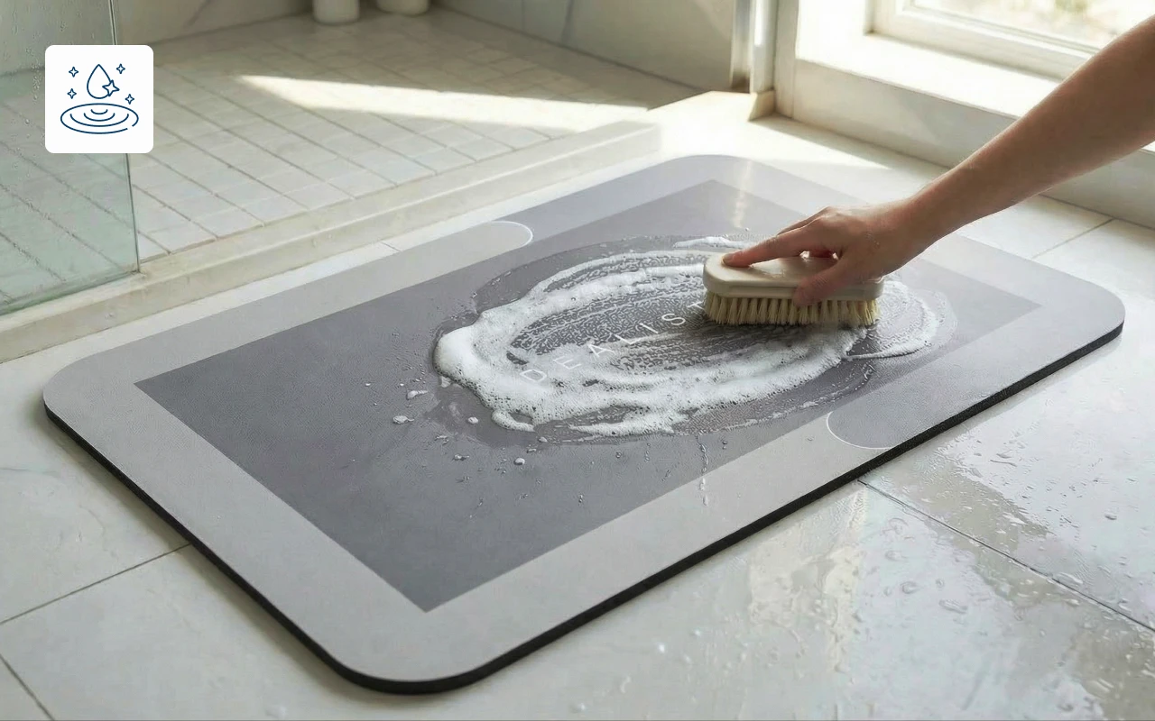 L'humidité disparaît presque instantanément, gardant les pieds au sec. Fini les zones humides ou les tapis mouillés après chaque douche.
