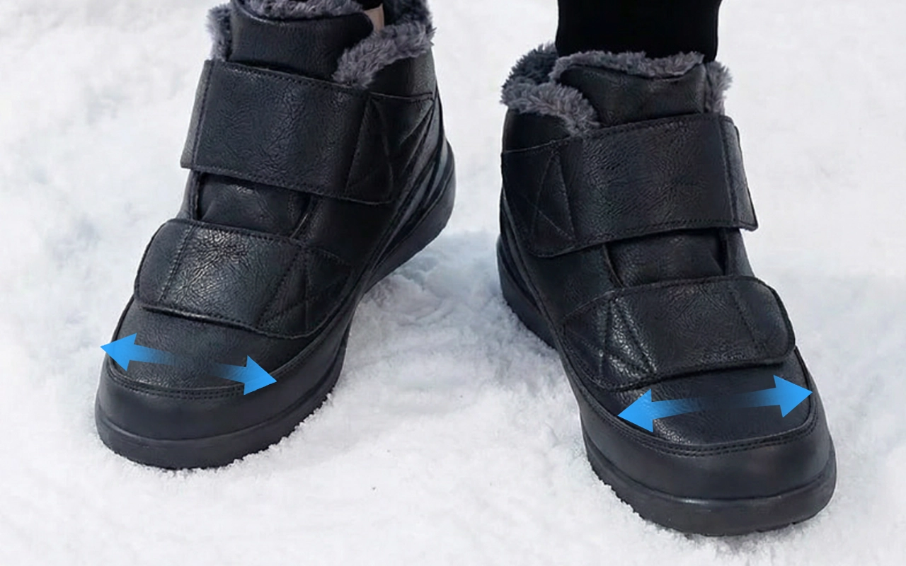 Le froid peut rendre la marche douloureuse lorsque les chaussures sont serrées ou inconfortables. Les bottes Ortorex aident à réduire la pression tout en gardant les pieds au chaud et protégés. L'intérieur doux apaise les zones sensibles, tandis que la forme adaptable s'ajuste aux variations de la taille du pied.
