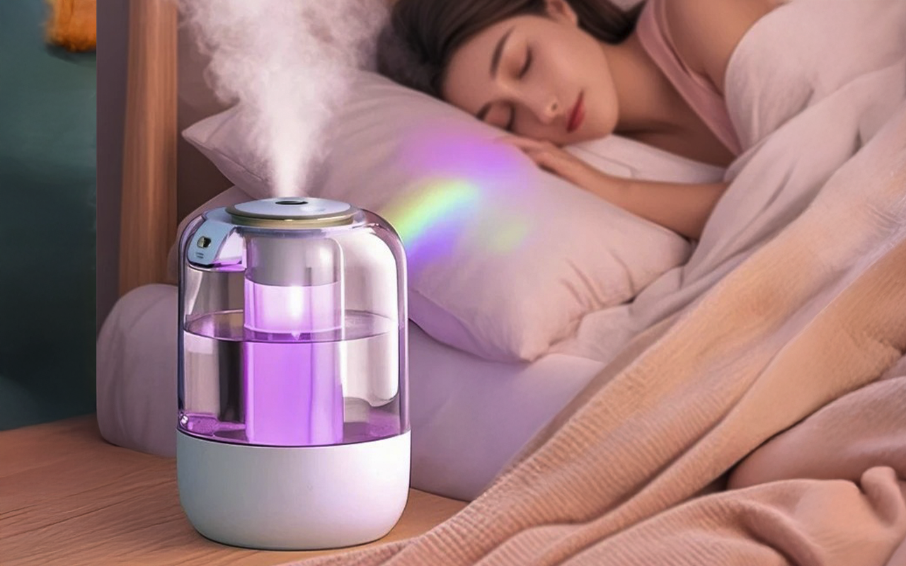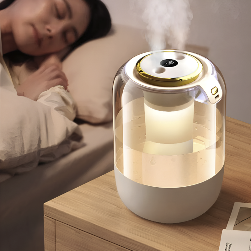 L'air sec provoque de l'inconfort et peut perturber votre sommeil. L'humidificateur Ortorex rend votre espace plus frais et plus confortable. Profitez d'une brume apaisante et d'une lumière douce à tout moment. Améliorez l'air et l'ambiance de votre pièce avec un seul appareil.