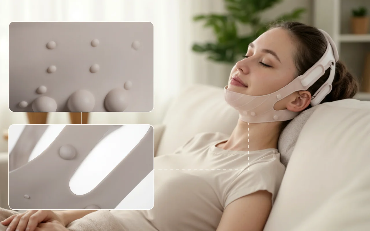 Je porte ce bandeau lifting en lisant le soir, et ma ligne de mâchoire paraît déjà plus nette. Silicone doux, aucune pince, et mes joues sont plus fermes.
