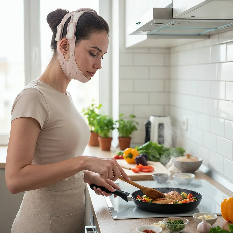 Je porte ce bandeau lifting en lisant le soir, et ma ligne de mâchoire paraît déjà plus nette. Silicone doux, aucune pince, et mes joues sont plus fermes.